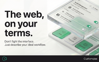 Customaise är ett kraftfullt tillägg för Chrome som låter användare anpassa sina webbläsarupplevelser utan att behöva koda. Med hjälp av en AI-agent kan användare enkelt skapa, testa och implementera skript som löser vanliga problem på webben. Programmet stödjer över 50 språk och gör det möjligt att beskriva önskade ändringar på ett enkelt och förståeligt sätt. Funktioner som 'Click Autopilot', 'Data Liberation' och 'Instant Prototype' gör att användare kan effektivisera sina arbetsflöden och göra webben mer användarvänlig.
